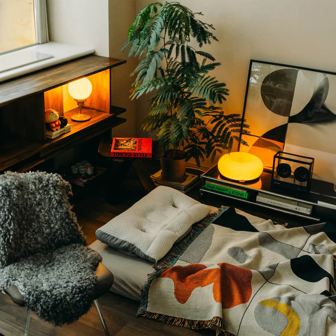 Inspired by classic Nordic designs, this donut lamp illuminates your bedroom in style. The warm orange hue is both bold and comforting at the same time. The lamp shade dampens the bright, harsh light from inside to provide that familiar sunset-like glow.