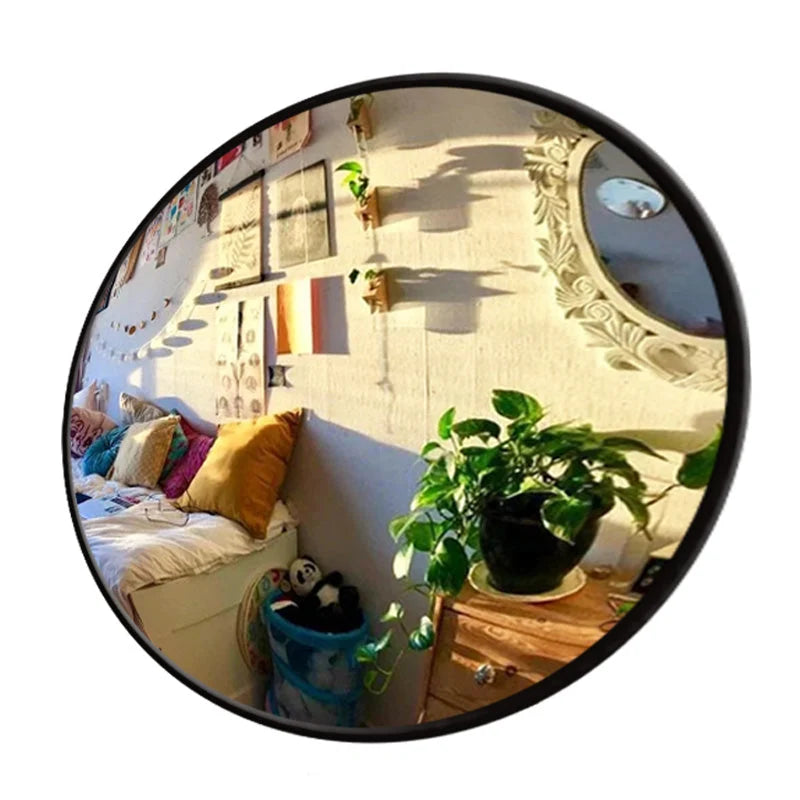 This 30cm convex mirror adds a unique, modern touch to bedroom decor with its clean, functional design. Originally crafted for visibility, its sleek frame and compact size make it an intriguing statement piece that blends industrial style with contemporary interiors. Elevate your space with a mirror that combines form and unexpected flair.